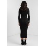 Turn heads in timeless elegance with this sleek black ribbed bodycon midi dress, designed to flatter your curves and elevate your evening style.